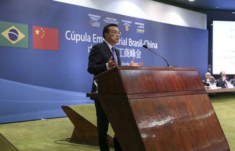 Visiting Premier Li Keqiang and Brazilian President Dilma Rousseff attended a China-Brazil Business Summit on May 19, where the former proposed a "3 x 3" model for boosting China-Latin America collaboration on production capacity.