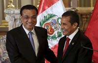 Premier Li Keqiang and Peru President Ollanta Humala witness the signing of 10 agreements, including investment and transportation.