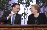 Premier Li Keqiang and Chilean President Michelle Bachelet met with media members following their talks at the presidential residence in Santiago on May 25.