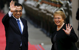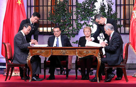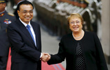 Chinese Premier Li Keqiang and Chilean President Michelle Bachelet witness the signing of a host of agreements by the two countries in Santiago.