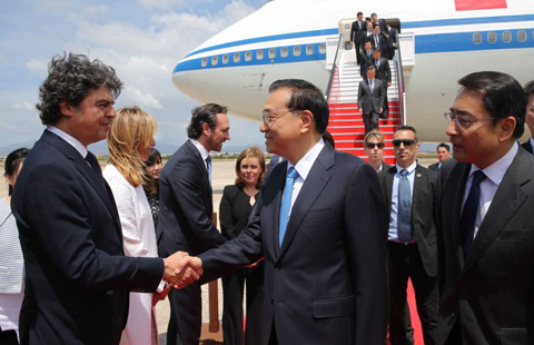 Chinese Premier Li Keqiang, middle, leaves Santiago de Chile Airport to return to China as he wraps up a nine day visit to four Latin American countries, namely Brazil, Columbia, Peru and Chile, on May 26. On his way home, during a technical stop in the Spanish island of Mallorca on May 27, he held talks with Spanish Deputy Prime Minister Soraya Saenz de Santamaria.