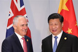 China and Australia on Monday agreed to beef up exchanges and cooperation in various areas as leaders of the two countries met on the sidelines of the ongoing Group of Twenty (G20) summit in Turkey.