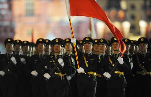 Chinese guards of honor were awarded medals Wednesday by the Russian Defense Ministry to commemorate their participation in the upcoming Victory Day parade on May 9.