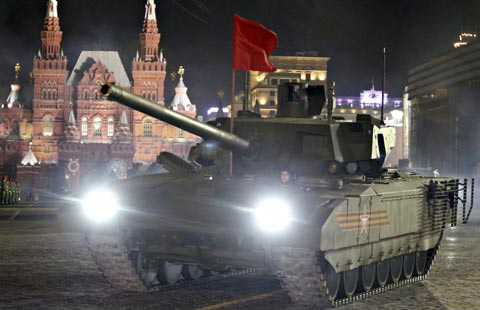 Russia's new Armata tank appeared in public for the first time Monday, rumbling down a broad Moscow avenue on its way to Red Square for the final rehearsal of the Victory Day parade.
