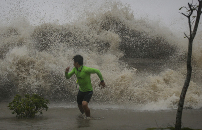 Astronauts Jing Haipeng (right) and Chen Dong salute inside the spacecraft at the moment of launching on Monday. [Photo/Xinhua] |