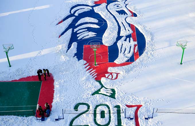 The General Staff Building is illuminated during a New Year multimedia light show in St. Petersburg's Palace Square, Russia, Dec 27, 2016. [Photo/IC]