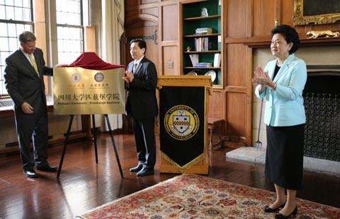 Sichuan University and the University of Pittsburgh unveiled a joint engineering institute at a ceremony in Pittsburgh,under the witness of Chinese Vice-Premier Liu Yandong.