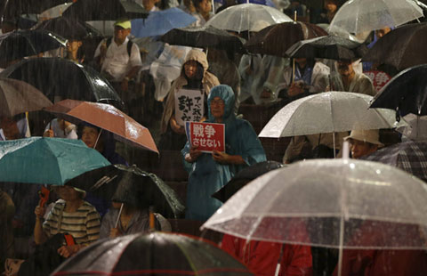 Some 45,000 Japanese protestors rallied in front of the country's parliament building in downtown Tokyo late Monday against the government-backed security bills, trying to stop a possible passage of the controversial legislation in the Diet's upper house this week.