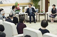 Chinese Vice President Li Yuanchao met with a group of Japanese orphans who were raised by Chinese families after the Chinese People's War of Resistance Against Japanese Aggression.