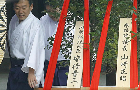 Japanese Prime Minister Shinzo Abe Monday made an offering to the notorious war-linked Yasukuni Shrine on the first day of its three-day spring festival which began Monday.