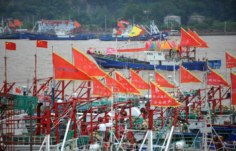 After being moored for three-and-a-half months due to the annual fishing ban on the East China Sea, nearly 2,000 boats are ready to go on Sunday noon, at Shipu Fishing Port in Zhejiang province, one of the six major fi shing ports in China.