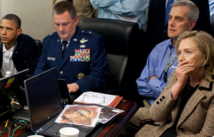 US Secretary of State Hillary Rodham Clinton said Thursday she has "no idea" what she and the rest of President Barack Obama's national security team were watching at the precise moment that a photographer snapped what has become an iconic image of the operation that killed Osama bin Laden in Pakistan.