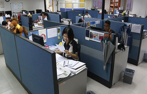 Applicants for visas wait in line at the British visa center in Beijing on Monday. [WANG JING / CHINA DAILY] |