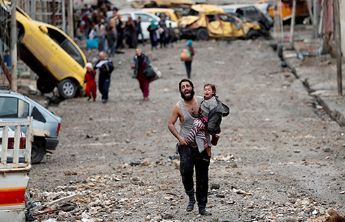 Rescuers check for signs of life in Xinmo village, Sichuan province.[Photo by Feng Yongbin/China Daily] |