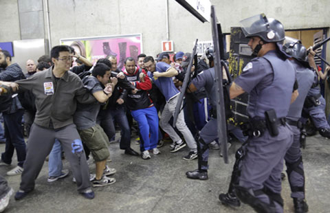 2014-06-12 12:11Rio airport workers strike on eve of World Cup
