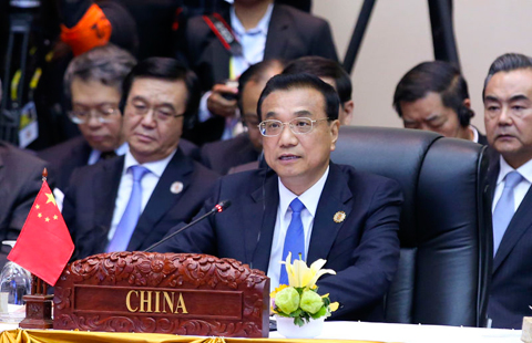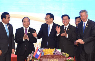 After attending the 11th East Asia Summit on Thursday, Premier Li Keqiang participated in a ceremony around the issuance of the Joint Leaders' Statement on the Regional Economic Comprehensive Partnership at the National Conference Center in Vientiane, the capital and largest city in Laos.