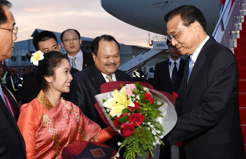 Premier Li Keqiang arrived in Vientiane, capital of Laos, on Tuesday for a four-day visit to the Southeast Asian country, where he will attend the East Asia Summit and pay an official visit to Laos.