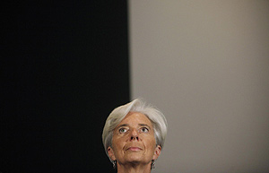 French Finance Minister Christine Lagarde met with her Brazilian counterpart Monday to promote her candidacy to head the International Monetary Fund and said she backed the institution's reforms giving developing nations more of a voice in its operations.