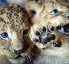 One-month-old lion cubs play in their enclosure at the zoo in Nizhny Novgorod, Feb 6, 2011.