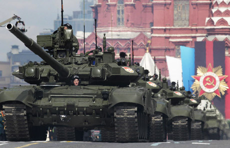 Russian military personnel march along Red Square during a military parade on the Victory Day in Moscow May 9, 2011.
