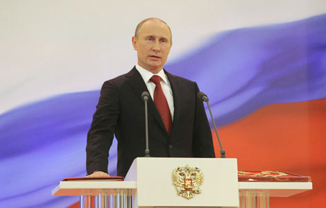 Vladimir Putin was sworn in on Monday as Russian president, starting his third term in the Kremlin following the two consecutive terms from 2000 to 2008.