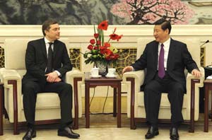 Chinese President Hu Jintao and his Russian counterpart Dmitry Medvedev on Saturday exchanged their new year greetings.