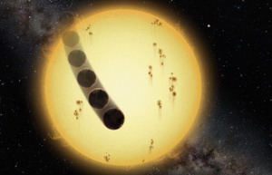 A retrograde hot Jupiter: the transiting giant planet orbits very close to the star and in a direction opposite to the stellar rotation, in this artist's rendering released May 11, 2011.
