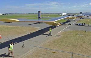 The solar-powered HB-SIA prototype aircraft takes part in a flying display during the 49th Paris Air Show at the Le Bourget airport near Paris June 26, 2011.