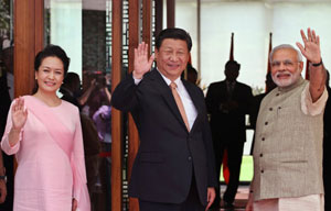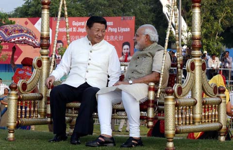 Wearing traditional Indian vest presented by Prime Minister Narendra Modi, Chinese President Xi Jinping visited Modi's home state of Gujarat Wednesday, and extended wishes to his 64th birthday.