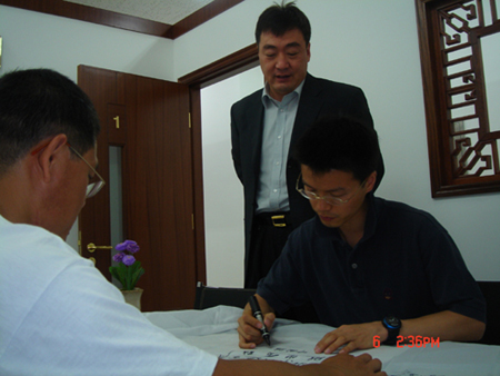 參贊邢海明先生和新聞官陳俊杰先生并為本次活動留言“讓我們共同努力,為2008北京奧運會成功舉辦做出貢獻!”,最后參贊陳海明先生并與我合影留念。