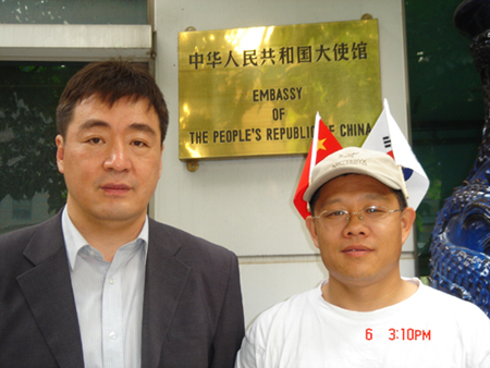 中國大使館的參贊邢海明先生和新聞官陳俊杰先生熱情地接待了我,并詳細告知我有關中國公民在韓國的注意事項。因為“環球走單騎”活動并沒有通過正式的外交途徑函告中國駐韓國大使館,中國駐韓國使館不能給予相應活動的支持。但如遇困難要及時與使館聯系,他們會履行大使館的應盡職責。