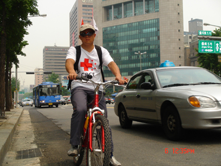| 去中國駐韓國大使館途中(韓國首都首爾沒有自行車道) |