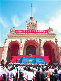 7月19日,首屆“全國中小企業創新與發展成果展覽會”在北京展覽館開展。數千名政府官員和商界人士參加了開幕式。