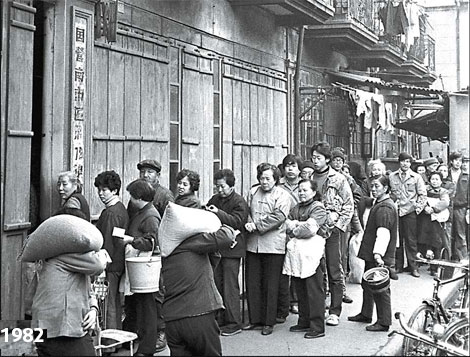 那是一個寒冷的冬天,排隊的人們把凍僵的雙手塞進口袋里或縮到袖子里。隊伍很長,延伸到了王文瀾的鏡頭以外。很顯然,大家都不高興,沒有人在家長里短地閑聊取樂。這就是改革開放之前非常典型的中國消費者生活。