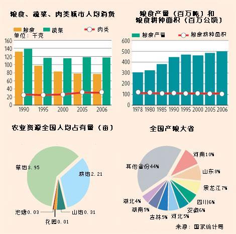 而中國卻在耕地面積沒有增加的情況下,將糧食年產量比30年前提高了60%。這在相當長的一段時期里,為世界食品價格的穩定作出了貢獻。然而,由于某些國家以糧食為原料生產乙醇,又加之全球氣候變化,現在世界食品價格持續攀升,某些地區的價格更是高得讓人無法承受。