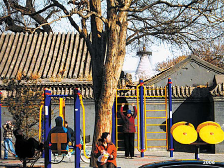 但是對于北京的普通老百姓來說,比如說,對于王文瀾先生2006年拍到的這些在胡同里健身器上晨練的人們而言,奧運會并沒有那么多深刻的蘊(yùn)含。