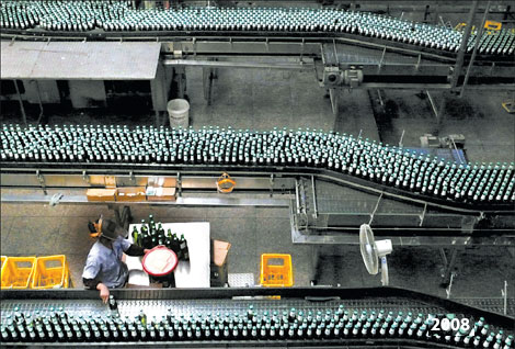 此外,對那些不了解中國工廠先進程度的人要說的是,這里看到的啤酒生產(chǎn)線決不代表最高水平。看到上面的電扇了嗎,說明這里還沒有安空調。這個廠子里必須有人為更多的調整做出規(guī)劃。