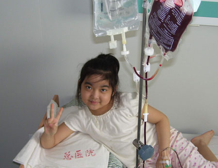 ![]() 2007年5月,祺祺生病前天真燦爛的笑臉 中國日報網環球在線消息:家住北京市朝陽區小關社區的7歲小女孩楊祺祺去年6月被診斷患有急性重型再造障礙性貧血(簡稱“再造”)。自從那個時候起,她原本寶貴的童年不得不變得比其他孩子更為艱辛,長達七個月的化療、頻繁的輸血、每天服用大量的中西藥變成了生活的主題。 據祺祺的主治醫師介紹,她的癥狀,簡而言之,就是骨髓不能造血。在中國,患再造的幾率大概是百萬分之一。而祺祺,則成了不幸的那一個! 為了維持生命,在找尋匹配的骨髓前,祺祺不得不繼續在醫院接受無休止的輸血。而如果找不到匹配的骨髓,這種維持方式會需將一直持續到這個小女孩生命的最后一刻! 注視著通過細細的輸液管緩緩注入自己身體的血液,聰明的祺祺問道:“醫生,如果你老給我輸入別人的血液,那我自己的骨髓是不是就會變得太懶,而更不會造血了呢?” 沉默頓時凝住了整個病房。“你看她多靈!她什么都知道!”祺祺的母親,32歲的李建強嘆息著,盤算著一個困擾了她很久的問題:到底下一步該怎么辦?