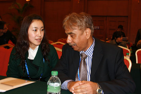 | 巴基斯坦聯(lián)合通訊社的記者馬蘇德(右)興致勃勃地參加了云南省第十一屆人民代表大會第二次會議 |