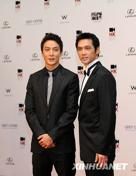 3月22日,香港演員吳彥祖(左)和日本演員加藤雅也出席香港國際電影節(jié)開幕典禮。新華社記者陳鐸攝