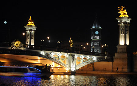 始建于1973年的北安橋寬24.6米,橋頭雕塑采用西方古典表現形式,橋兩端的橋柱上分別是中國傳統的青龍、白虎、朱雀、玄武,寓意四方平安。 從天津三岔河口到塘沽入海口,海河上排列點綴著24座橋梁。這些橋梁造型不同,各具特色,不僅是兩岸交通及經貿文化交流紐帶,也凝聚了天津歷史的深厚底蘊,同時,海河上的“一橋一景”還是一條絢麗多彩的觀光帶。 新華社記者 王曄彪攝