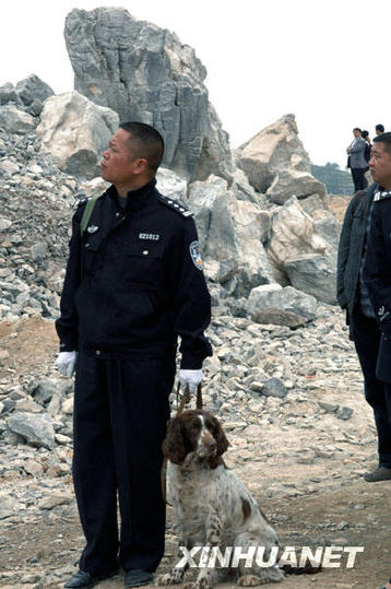 3月29日,民警帶著搜爆犬準(zhǔn)備進(jìn)行排查施救。新華社記者 楊俊江攝