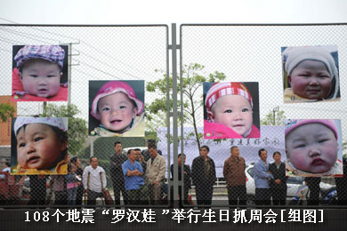 108個(gè)地震“羅漢娃”舉行生日抓周會(huì)[組圖] 2009-05-14 08:59
