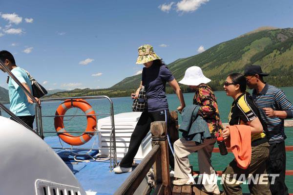 7月11日,游客們踏上游艇準(zhǔn)備游覽喀納斯湖。新華社記者 徐亮 攝 編輯:肖亭 來源:新華網(wǎng)