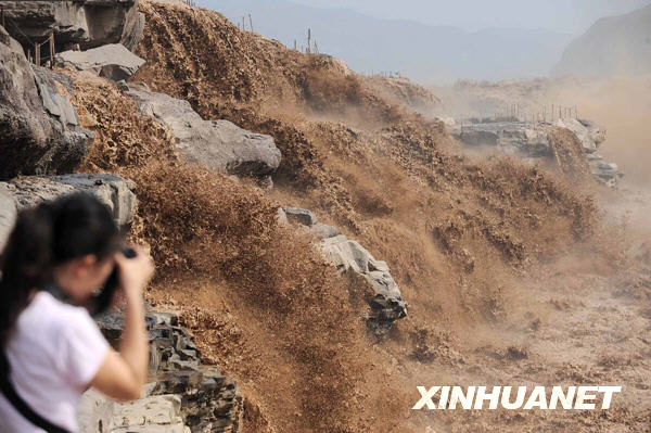 7月18日,游客在黃河壺口瀑布游覽觀賞。新華社發(祁小軍 攝)