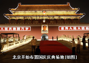 9月29日晚,參加國慶慶典的相關部門陸續進入天安門廣場,為國慶慶典和聯歡晚會進行場地布置和設備安裝調試,天安門廣場進入慶典前的最后準備階段。