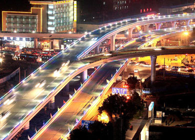 11月19日晚拍攝的全線貫通的武漢卓刀泉立交橋。當(dāng)晚,武漢市第一座鋪上彩色防滑路面的立交橋——卓刀泉立交橋全線貫通。立交橋建成后,武珞路的擁堵現(xiàn)象將可得到緩解。新華社發(fā)(周國強(qiáng)攝)