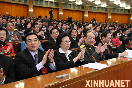3月15日,十一屆全國人大一次會議在北京人民大會堂舉行第五次全體會議。這是代表在鼓掌。 新華社記者劉衛兵攝
