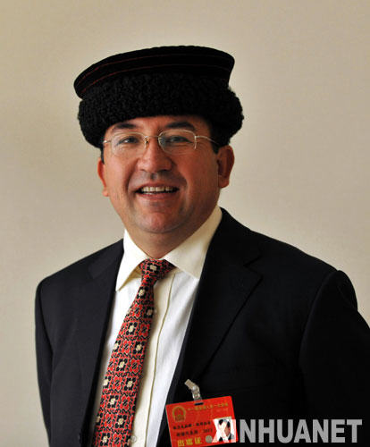 這是來自新疆的全國人大代表地力毛拉提·依布拉音(塔吉克族)。 新華社記者樊如鈞攝