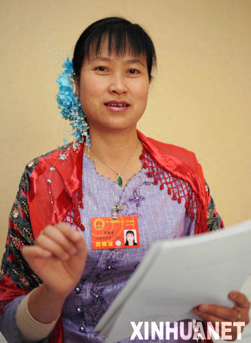 這是來自云南的全國人大代表管國芳(傣族)。 新華社記者楊宗友攝